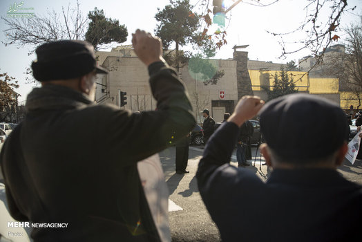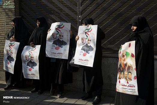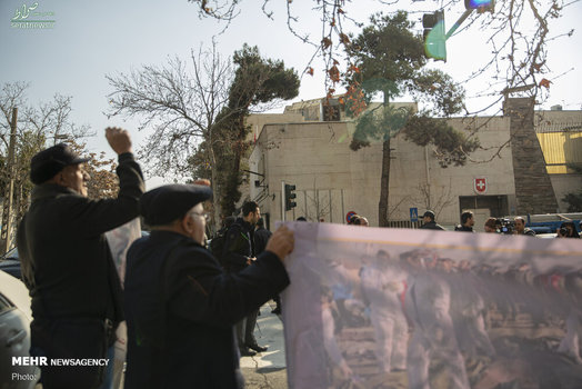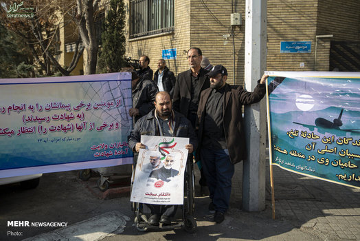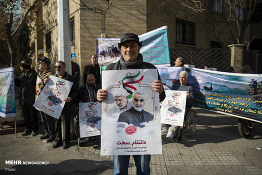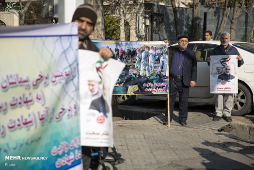 تعدادی از جانبازان و ایثارگران هشت سال دفاع مقدس صبح چهارشنبه ۲۵ دی با در دست داشتن پلاکاردها و بنرهایی در اعتراض به ترور سپهبد شهید قاسم سلیمانی و در حمایت از سپاه پاسداران انقلاب اسلامی مقابل دفتر حافظ منافع آمریکای سفارت سوئیس تجمع کردند و علیه آمریکا شعار سر دادند.