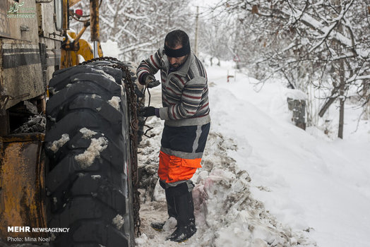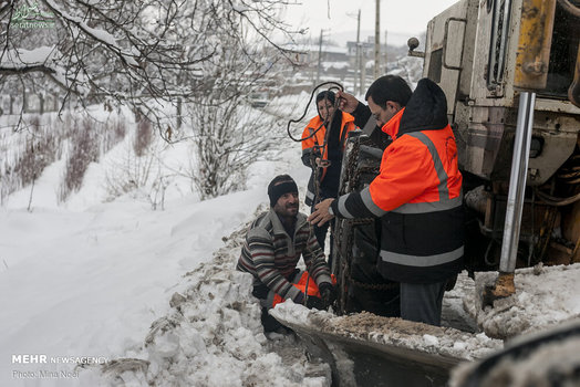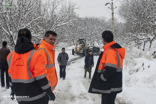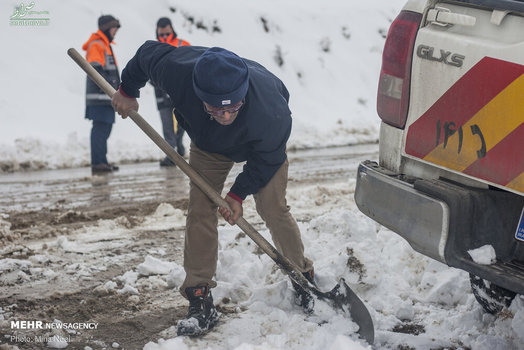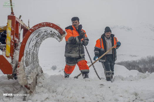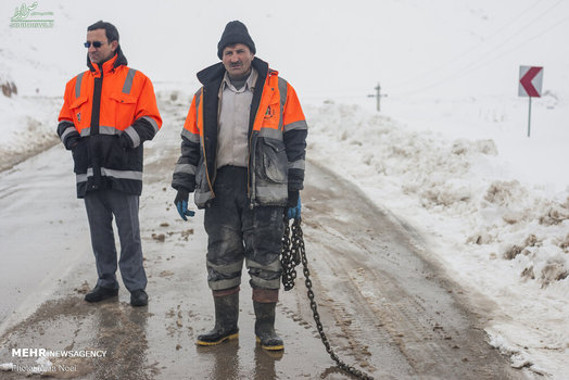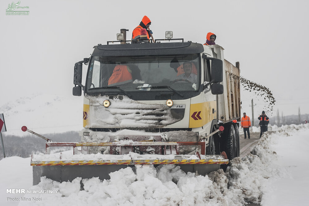 با بارش برف و کولاک در جادههای مواصلاتی استان آذربایجان شرقی، تلاش راهداران برای برفروبی و نمک پاشی جادهها ادامه دارد.