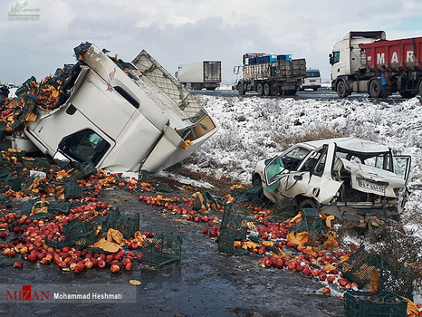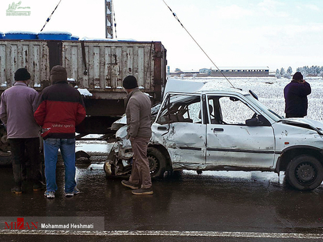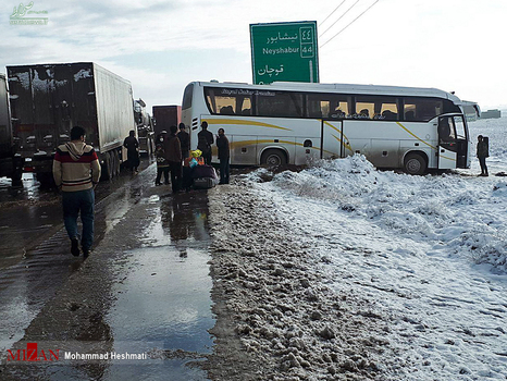 در کیلومتر پنج جاده سبزوار - نیشابور، به دلیل لغزندگی سطح جاده در پی بارش شدید برف، ۳۰ دستگاه خودرو با یکدیگر برخورد کردند و ۱۲ مصدوم برجای گذاشت.