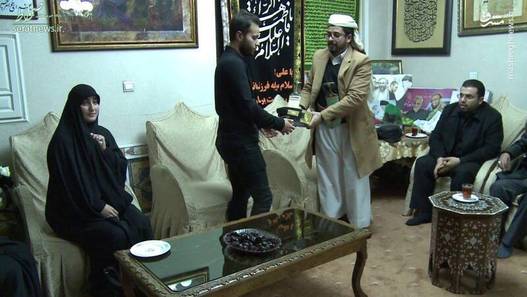 ابراهیم الدیلمی سفیر یمن در ایران با خانواده سردار شهید حاج قاسم سلیمانی دیدار کرد.وی در این دیدار یک جنبیه (خنجر معروفی که به عنوان لباس رسمی مردان در یمن استفاده می شود) به پسر سردار سلیمانی هدیه داد.