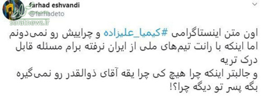 واکنش کاربران پس از مصاحبه جدید کیمیا علیزاده +تصاویر