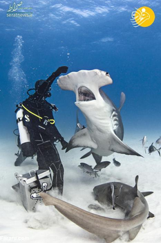 تصاویر/ نزدیکی دلهره آور غواصان به کوسه های کارائیب