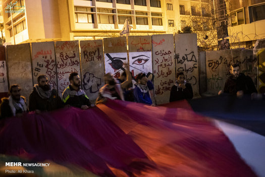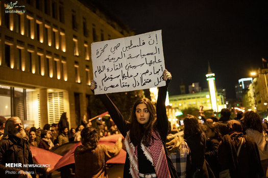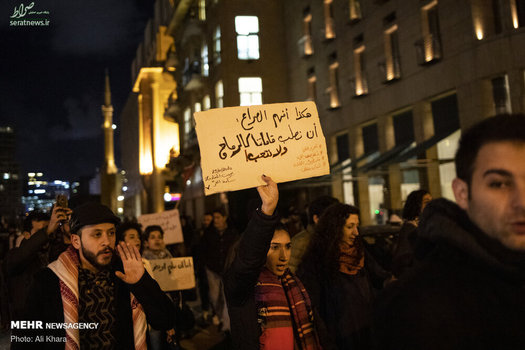 مردم بیروت پنجشنبه ۱۰ بهمن ۹۸ در اعتراض به طرح موسوم به معامله قرن و حمایت از مردم فلسطین به میدان شهدا بیروت آمدند و شعارهای ضدآمریکایی و ضد اسرائیلی سردادند.