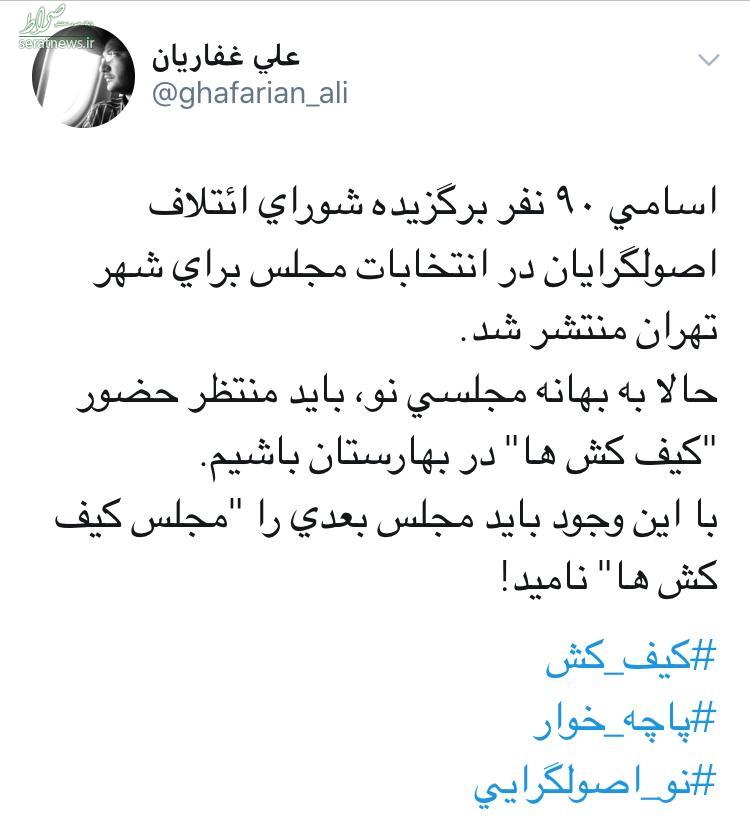 عكس/ توئيت مديرمسئول صراط پيرامون مجلس كيف كش ها!