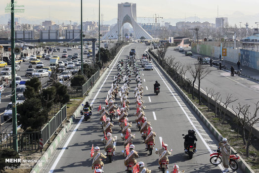 مراسم رژه موتورسواران نیروهای مسلح از فرودگاه مهرآباد تا حرم امام راحل به یاد ورود تاریخی امام امت به میهن برگزار شد.