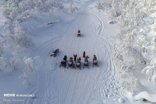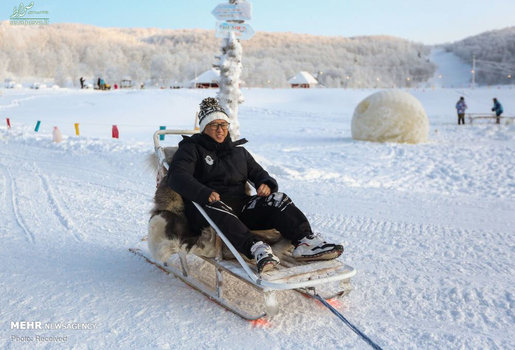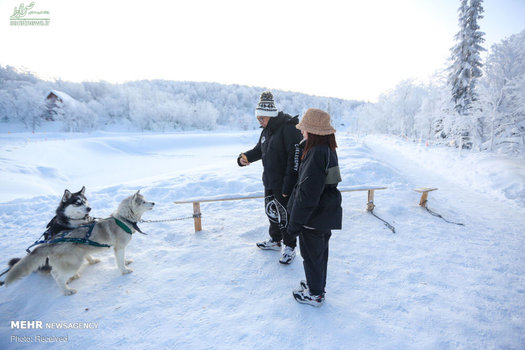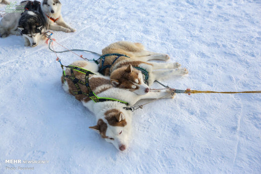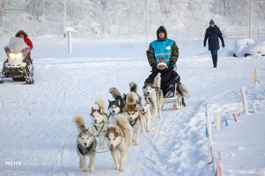 توریستهای چینی در پارک گردشگری «شفق شمالی» در مورمانسک روسیه با سگهای هاسکی سیبری به گردش پرداختند.