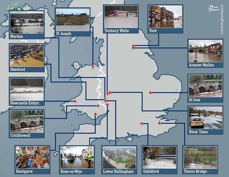 طوفان دنیس با بارش باران به اندازه یک ماه در مدت ۴۸ ساعت، بخشهایی از انگلیس را درهم نوردید.