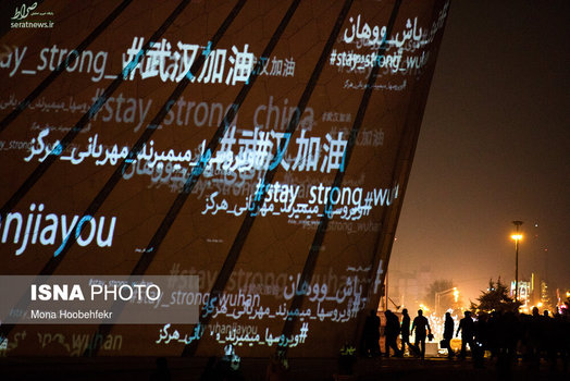در راستای تقویت مقاومت مردم چین در برابر ویروس کرونا و همچنین همدلی ایرانیان با قربانیان این ویروس، شامگاه، سه شنبه ۲۹ بهمن ماه یک ویدئو مپینگ بر روی برج آزادی تهران به نمایش درآمد. در این مراسم سفیر چین در تهران و تعدادی از خبرنگاران رسانههای این کشور نیز حضور داشتند.