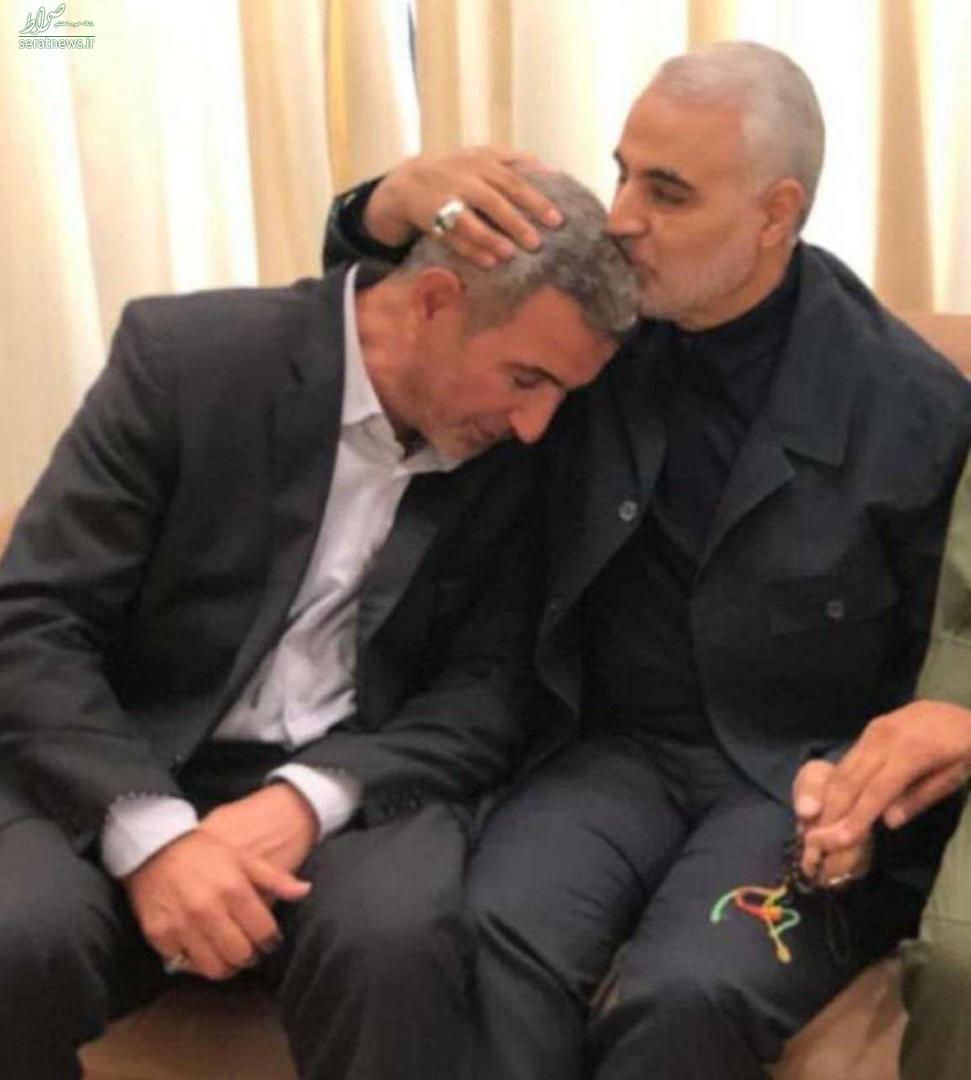 عکس/ بوسه سردار شهید سلیمانی بر پیشانی جانشین شهید ابومهدی المهندس