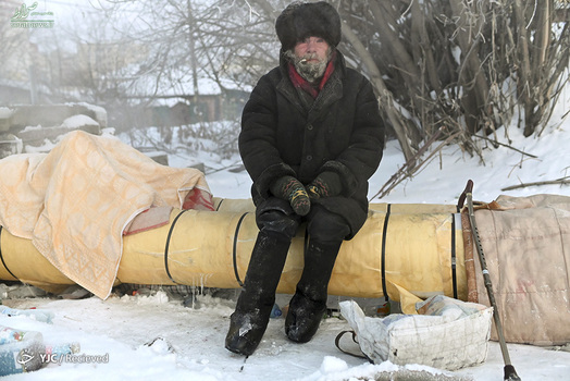 بسیاری از بی خانمانهای سیبری برای در امان ماندن از سرمای کُشنده به لولههای گرمایشی کارخانجات صنعتی پناه میبرند. سرمای هوا در امسک واقع در جنوب غربی سیبری به منفی ۳۰ درجه میرسد و افراد بی خانمان را در معرض سرماخوردگی مرگبار و یخ زدگی قرار میدهد. لولههای گرم صنعتی در امسک به پناهگاهی برای بی خانمانها تبدیل شده است.