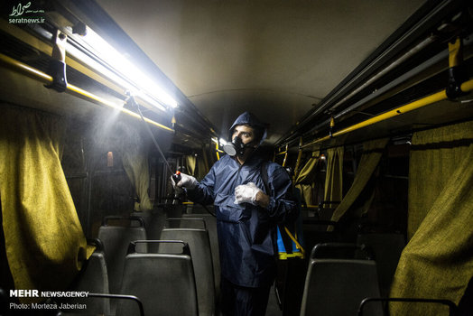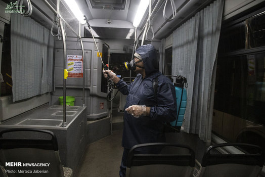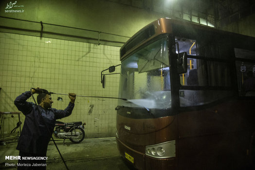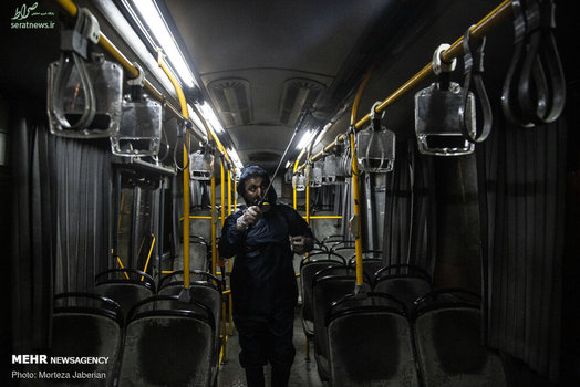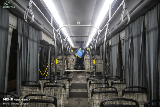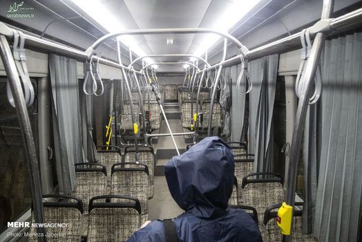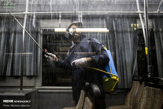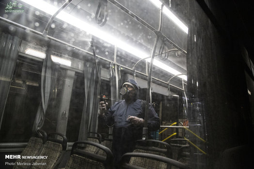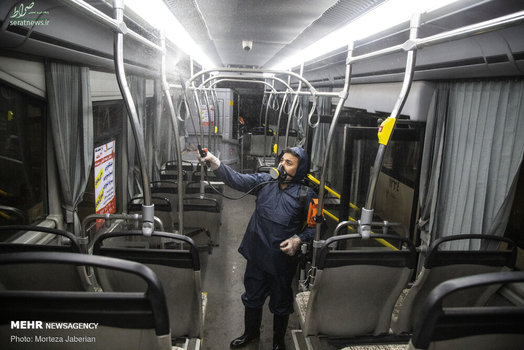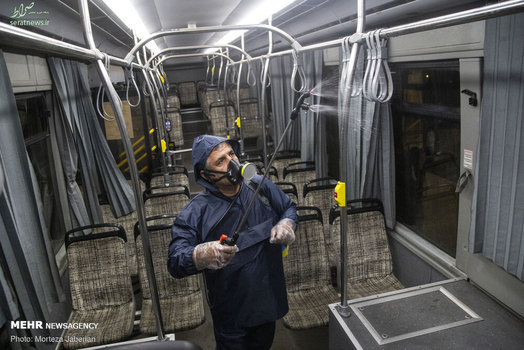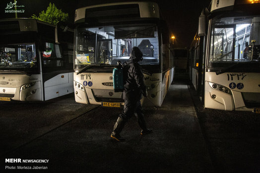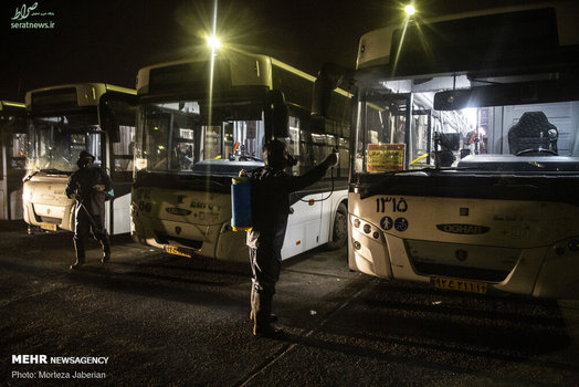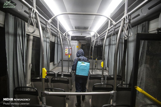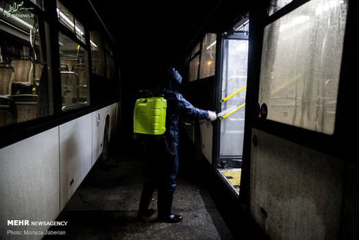 تصاویر/ ضدعفونی ناوگان حمل و نقل عمومی اهواز