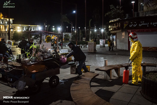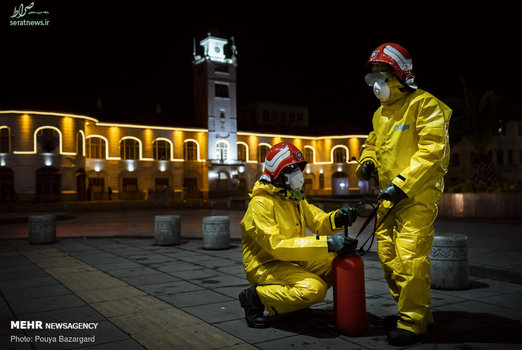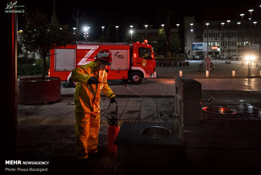 به همت آتشنشانان رشت و جهت پیشگیری از شیوع بیماری نو ظهور کرونا ویروس، تمامی مکان های عمومی هر شب پاکسازی می شوند.