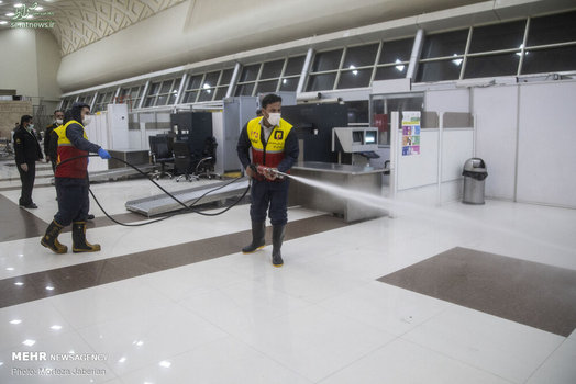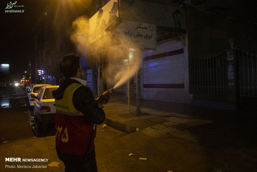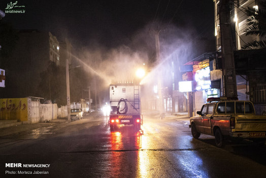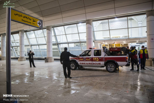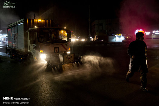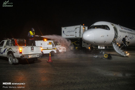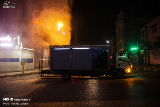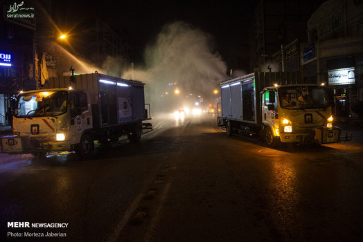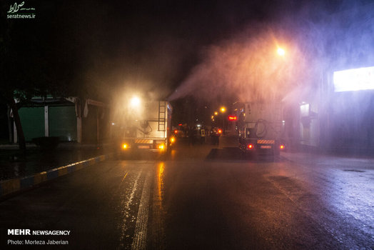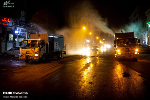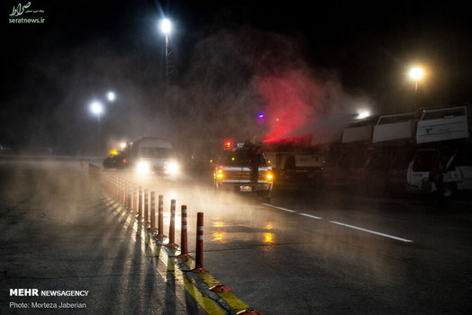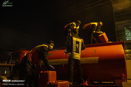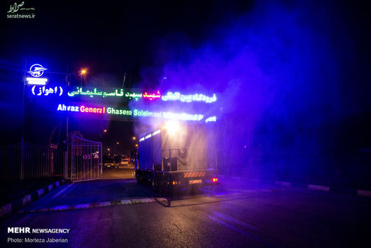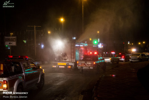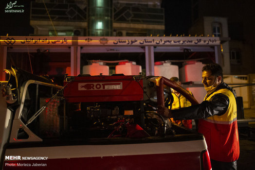 نیروهای آتش نشانی اهواز در عملیات شبانه خود معابر شهری، اماکن عمومی، فرودگاه و معابر پر تردد شهر اهواز را جهت مقابله با ویروس کرونا ضدعفونی کردند.
