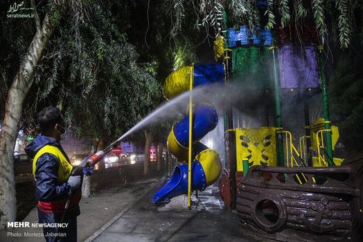 تصاویر/ ضدعفونی معابر شهری و اماکن عمومی اهواز