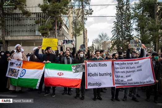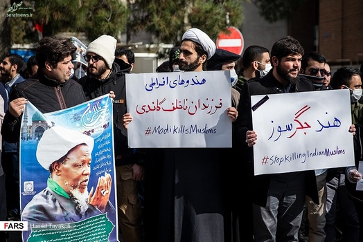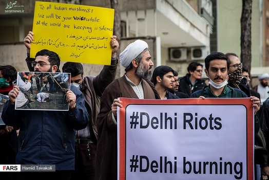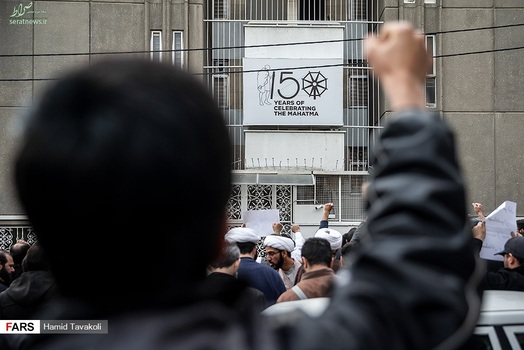 جمعی از دانشجویان، طلاب و مردم، عصر سهشنبه ۱۳ اسفند ۱۳۹۸ در اعتراض به کشتار بی رحمانه مسلمانان در هند و سانسور این قتل عام در رسانههای جهان، مقابل سفارت هند در تهران تجمع کردند.