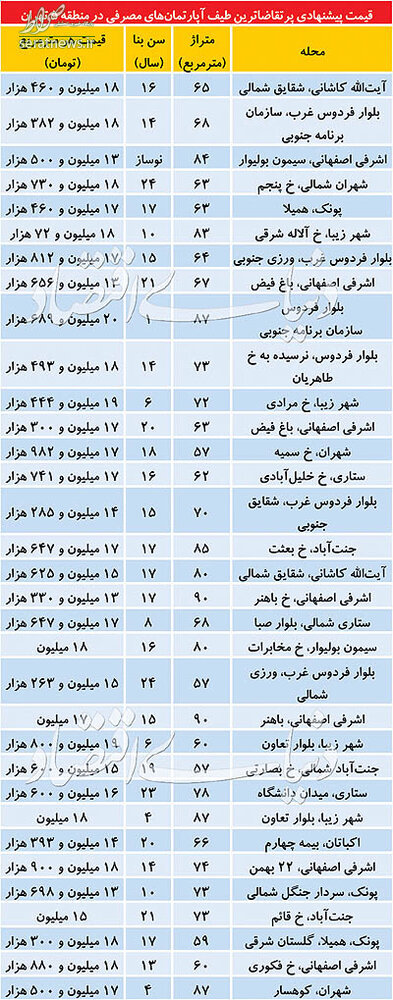 جدول/ قیمت آپارتمان در منطقه ۵ تهران