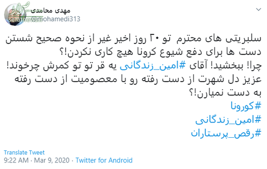 در ادامه تعدادی از پستهای انتقادی کاربران را به چالش جنجالی امین زندگانی مشاهده میکنید.