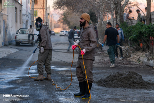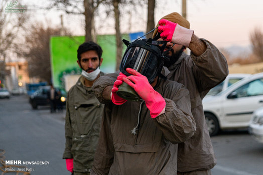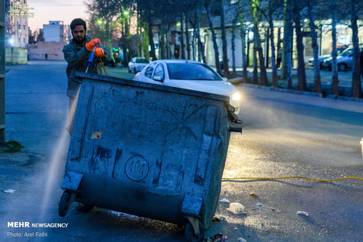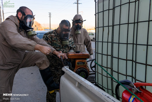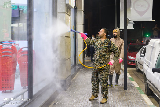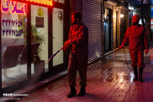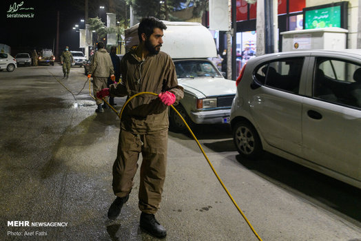 در ادامه مبارزه با ویروس کرونا گروهی از بسیجیان جهت جلوگیری از انتشار ویروس کرونا به صورت بسیج مردمی با تهیه مواد ضد عفونی کننده و لوازم مورد نیاز هر شب معابر شهری کرج را ضدعفونی میکنند.