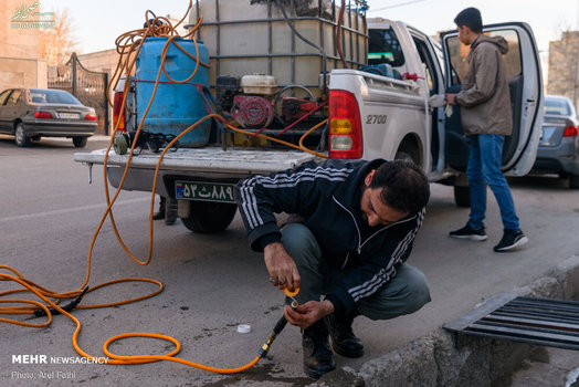 تصاویر/ ضدعفونی معابر عمومی و سطح شهر کرج