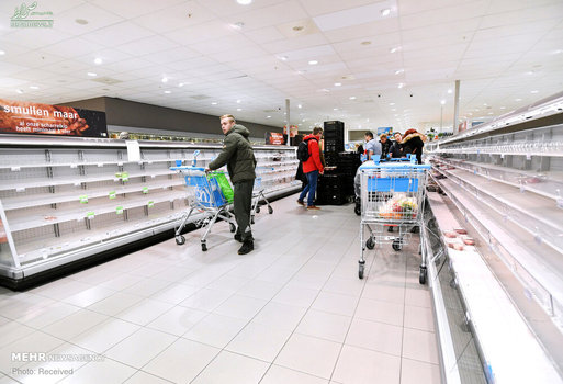 هجوم مردم بلژیک به فروشگاه ها در پی شیوع کرونا برای تهیه آب،مواد غذایی، وسایل ضد عفونی و دستکش طبی فروشگاهها با کمبود مواجه اند.