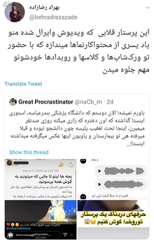 به گزارش باشگاه خبرنگاران این خانم تحت هیچ عنوانی در کادر هیچ بیمارستانی فعال نبوده و در استان هرمزگان با تهیه فیلم و کلیپ برای مسیح علی نژاد سعی در فضاسازی و تشویش اذهان عمومی داشته که روز گذشته توسط سازمان اطلاعات سپاه هرمزگان دستگیر شده است. انتشار خبر دستگیری یکی از نوچههای مسیح علینژاد که برای فعالیت علیه نظام جمهوری اسلامی از هیچ اقدام کثیفی فروگذار نمیکند با واکنش کاربران فضای مجازی نیز همراه شد. در ادامه میتوانید نمونههایی از پستهای کاربران فضای مجازی را مشاهده کنید: