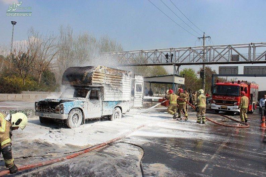 سخنگوی سازمان آتشنشانی و خدمات ایمنی تهران ادامه داد: با حضور آتشنشانان در محل حادثه مشاهده شد یک دستگاه خودروی باری نیسان حاوی چهار هزار لیتر مواد شیمیایی (بهگفته راننده دو هزار لیتر متانول و دو هزار لیتر کلر) دچار آتشسوزی شده و خودرو کاملاً شعلهور بود.