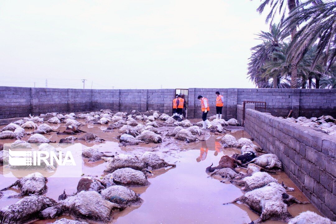 عکس/ دفن دامهای تلف شده در سیل جنوب کرمان