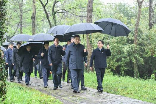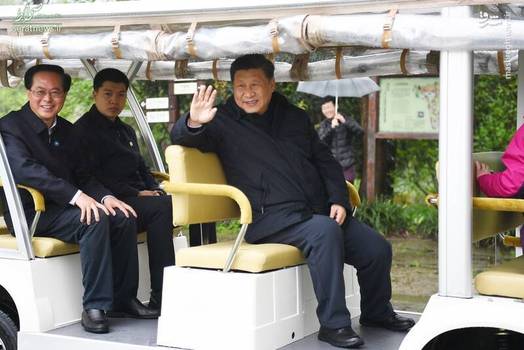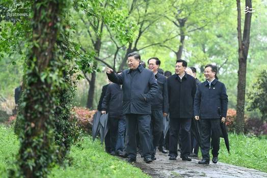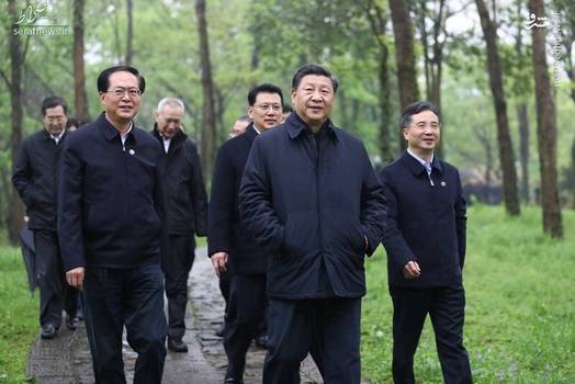 رئیس جمهور چین بدون ماسک به همراه وزرای خود از پارکی در استان ژجیانگ این کشور بازدید کرد.