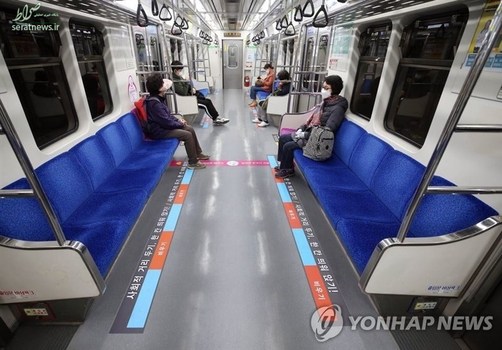 در خط یک متروی شهر دائگو(چهارمین شهر پرجمعیت کره جنوبی) علامتهایی در کف واگنهای مترو نصب شده که میزان فاصلهای که مسافران هنگام نشستن باید آن را رعایت کنند مشخص شده است. میزان استفاده مردم از مترو در کره جنوبی پس از شیوع کرونا به یک سوم کاهش یافته است.