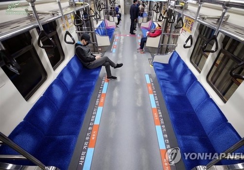 تصاویر/ شیوه فاصلهگذاری مسافران مترو در کره جنوبی