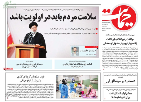 فاصله گذاری سلامت و معیشت/ کالگزیت آتش زیرخاکستر آمریکا/ تهران در فاز همه گیری/ دست رد بر سینه الزرفی تیتر تعدادی از روزنامه های امروز است.