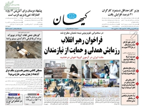 نهضت همدلی ایرانی/ ماه سرنوشت در عراق/ هشدار روحانی به صندوق بینالمللی پول/ گور رویای آمریکایی تیتر تعدادی از روزنامه های امروز است.