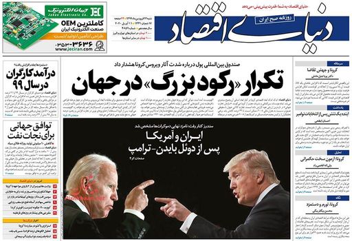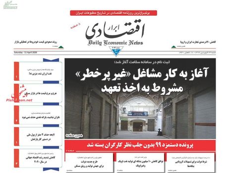 مهمترین تیترهای روزنامههای اقتصادی شنبه ۲۳ فروردین ماه به بیان مسائلی همچون آغاز به کار مشاغل پرخطر منوط به اخذ تعهد، هرج و مرج قیمت ها در بازار مسکن، دو دستور مهم رئیس جمهور به وزیر اقتصاد، کاهش بی سابقه ۱۰ میلیون بشکه ای تولید اوپک و غیر اوپک،  می پردازد. همچنین کارگران در وضعیت قرمز، سیل چک های برگشتی در راه است، تکرار رکود بزرگ در جهان، آتش بس نفتی، رفع توقیف از ۱.۶ میلیارد دلار متعلق به بانک مرکزی،  از جمله مهمترین تیترهای روزنامه های اقتصادی امروز به شمار می رود.