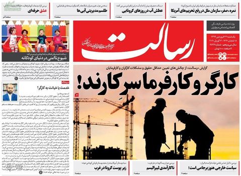چالش دستمزد در سال جهش تولید/ فاصله گذاری اشتباهی / کارنامه قبولی دانش بنیانها/ ۱۰۰ روز پس از شهادت حاج قاسم/ تیتر تعدادی از روزنامه های امروز است، صفحه نخست روزنامههای سیاسی امروز ( یکشنبه ۲۴ فروردین) را در ادامه مشاهده میکنید.