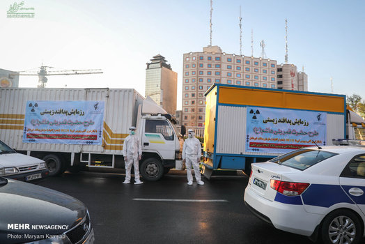 رزمایش بزرگ دفاع زیستی صبح یکشنبه توسط بسیج وزارتخانهها و ادارات حدفاصل میدان ولیعصر تا میدان هفت تیر برگزار شد.
