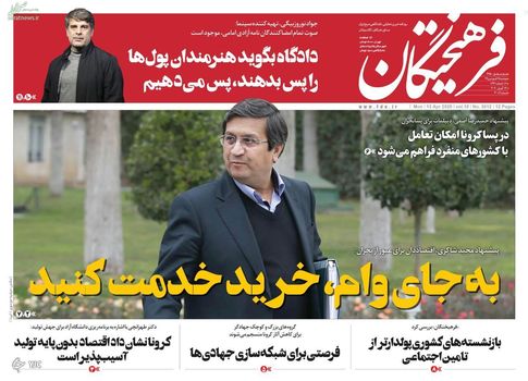 ابتلای تولید به بیکاری کرونایی/ سردرگمی در آموزش/ اعلام فاجعه ملی در آمریکا/ به جای وام، خرید خدمت کنید/ تیتر تعدادی از روزنامه های امروز است.