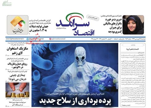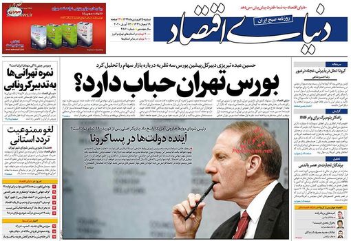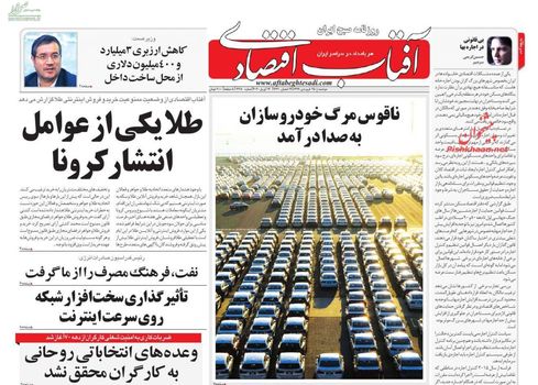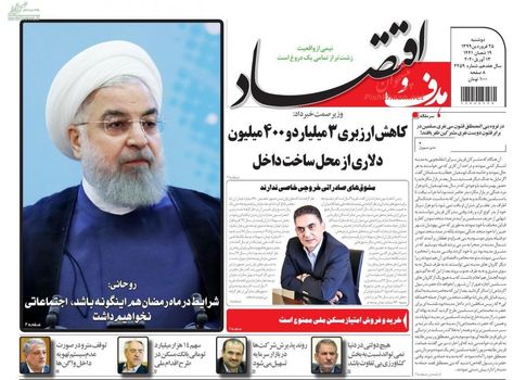 مهمترین تیترهای روزنامههای اقتصادی دوشنبه ۲۵ فروردین ماه به بیان مسائلی همچون ناقوس مرگ خودروسازان به صدا درآمد، طلا یکی از عوامل انتشار کرونا، لغو ممنوعیت تردد بین استان ها، خرید و فروش مسکن ملی ممنوع است، داخلی سازی با کاهش ارزبری، می پردازد. همچنین ضرورت بازبینی بودجه ۹۹، بورس تهران حباب دارد؟، مشوق های صادراتی مجوز خاصی ندارند، بازار سرمایه هوشمند در دستور کار، میانگین حقوق کارکنان دولت ۵.۴ میلیون شد، از جمله مهمترین تیترهای روزنامه های اقتصادی امروز به شمار می رود.
