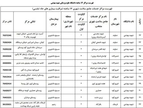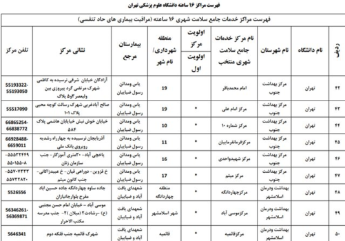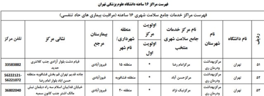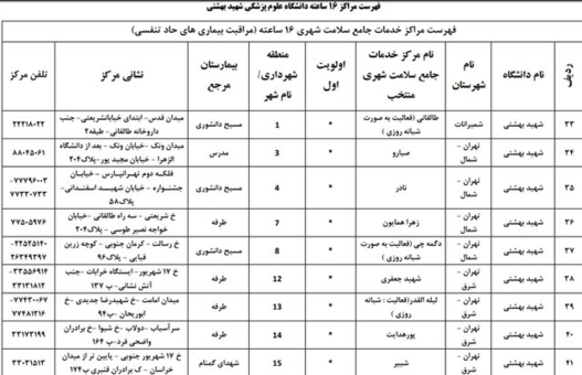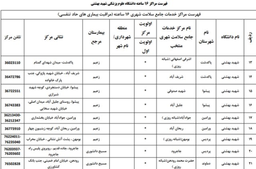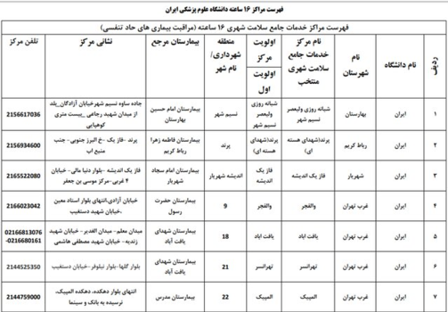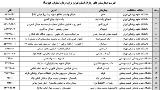 همچنین اسامی بیمارستانهای ریفرال استان تهران تحت پوشش بیمه سلامت برای درمان بیماران کووید - 19 به شرح زیر است: