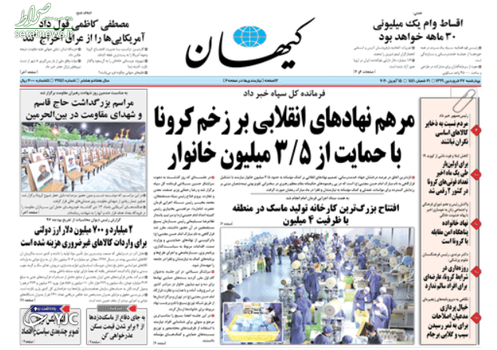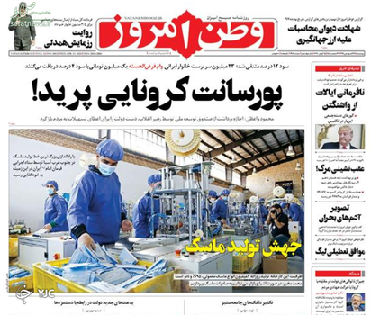 جهش تولید ماسک/ حقوق قامت خمیده بازنشستگان/ واردات دارو یا چوب بستنی؟! / ایالات نامتحد کرونایی/ تیتر تعدادی از روزنامه های امروز است.