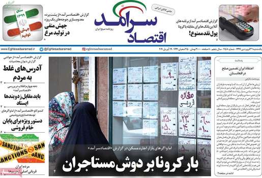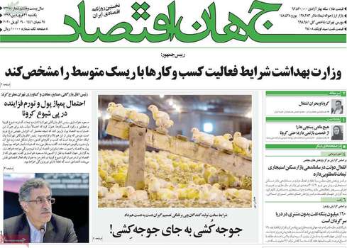 مهمترین تیتر‌های روزنامه‌های اقتصادی یکشنبه ۳۱ فروردین ماه به بیان مسائلی همچون دست هایی بیخ گلوی هپکو، شوک های ارزی تورم زاست، اما و اگر افزایش قیمت نفت، طراحی پلتفرم خودروی برقی روی میز ایران خودرو، توسعه صنعت پتروشیمی راهکار جلوگیری از خام فروشی، می پردازد. همچنین زنده به گور کردن برای حفظ تعادل قیمت ها، ماجرای ادامه دار دارهای گمشده، بار کرونا بر دوش مستاجران، صادرات کشور ۲۰ درصد کاهش یافت،مقدمات اخذ وام ۵۰ میلیون دلاری از بانک جهانی برای مقابله با کرونا، از جمله مهمترین تیترهای روزنامه های اقتصادی ۳۱ فروردین ماه به شمار می رود.
