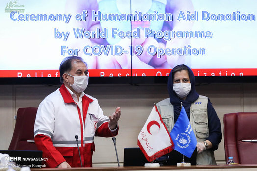 مراسم اهداء کمکهای بشر دوستانه برنامه جهانی غذا برای عملیات کووید ۱۹، ظهر یکشنبه در سازمان امداد و نجات هلال احمر برگزار شد.