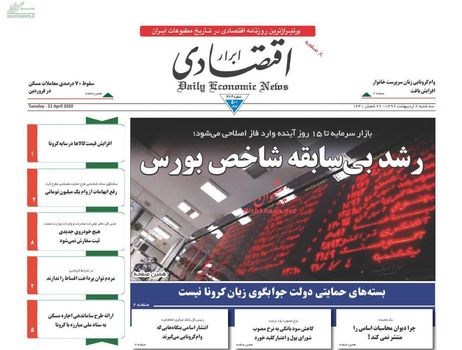 مهمترین تیترهای روزنامههای اقتصادی سه شنبه ۲ اردیبهشت ماه به بیان مسائلی همچون رشد بی سابقه شاخص بورس، بسته های حمایتی دولت جوابگوی زیان کرونا نیست، آغاز رسیدگی به متخلفان ارزی ، می پردازد.
