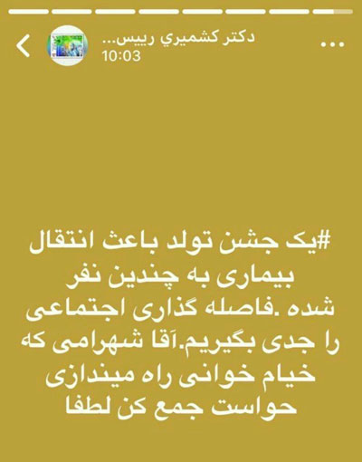 تصویری از استوری رییس دانشگاه علوم پزشکی بوشهر را می‌بینید که وی اعلام کرده است: یک جشن تولد باعث انتقال کرونا به چندین نفر شده است!/ برترین ها