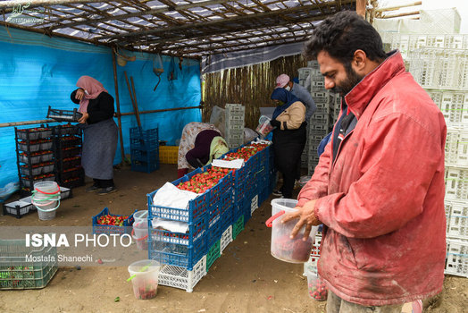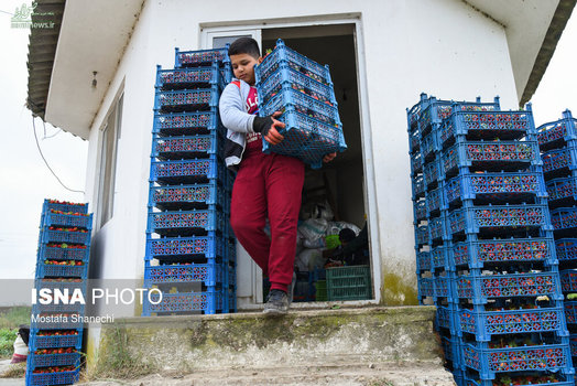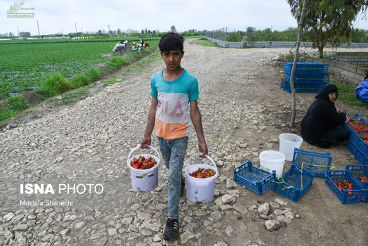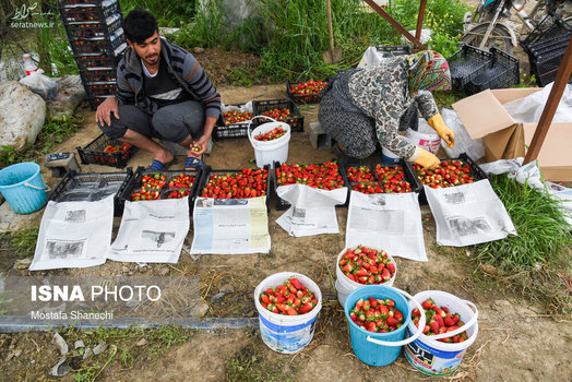 برداشت محصول توت فرنگی در مازندران همه ساله از نیمه دوم فروردین ماه آغاز میشود و تا پایان خرداد ماه ادامه مییابد. طبق آمار جهاد کشاورزی، مازندران با سطح زیر کشت حدود ۲ هزار هکتار، پس از استان کردستان رتبه دوم تولید توت فرنگی را در کشور دارد. به طور متوسط برای برداشت توت فرنگی از هر هکتار بین ۲۰ تا ۲۵ نفر نیروی کار لازم است، توت فرنگی حتما باید به صورت دستی چیده شود و هیچ روش مکانیزهای برای چیدن آن وجود ندارد.