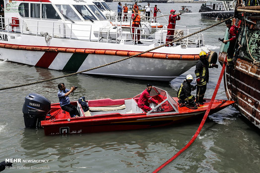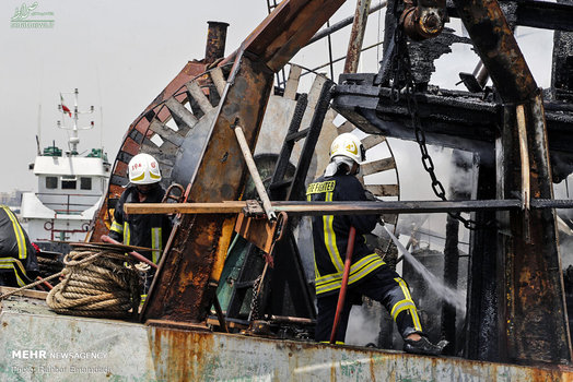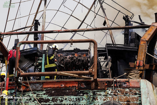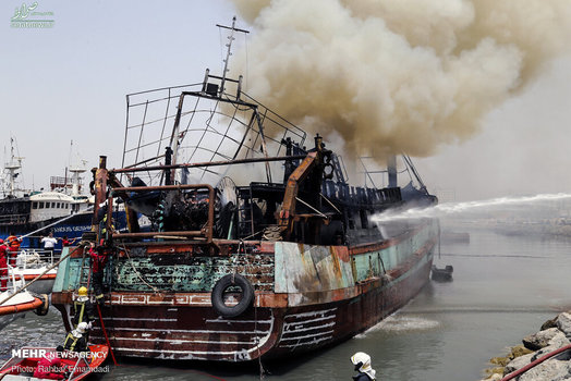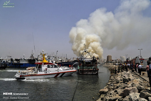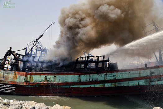 تصاویر/ حریق دو شناور در اسکله صیادی بندرعباس