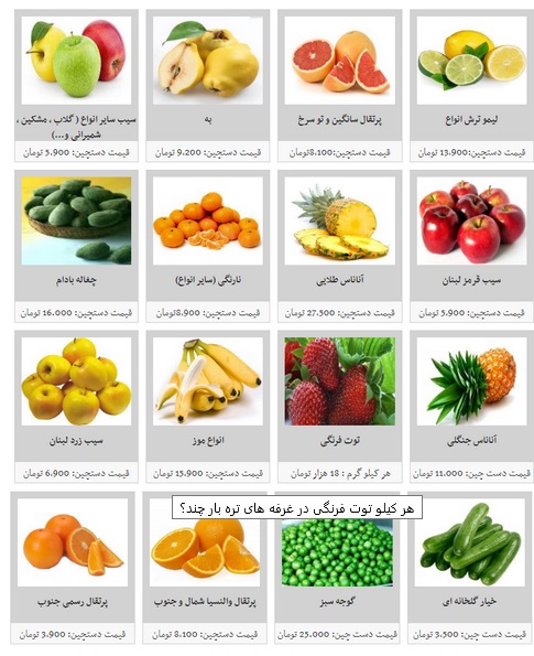 جدیدترین قیمت محصولات میادین میوه و ترهبار