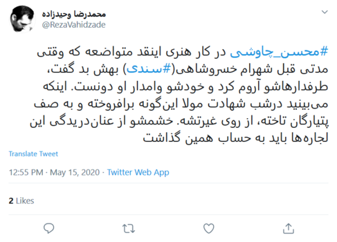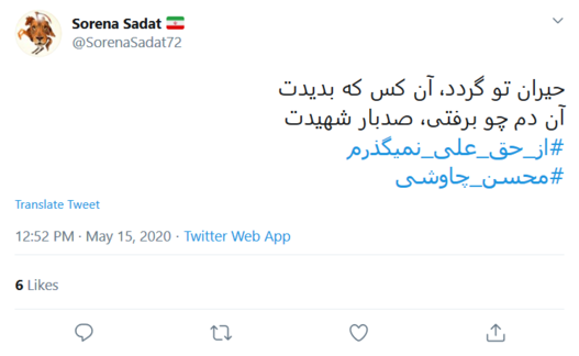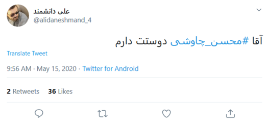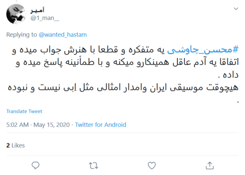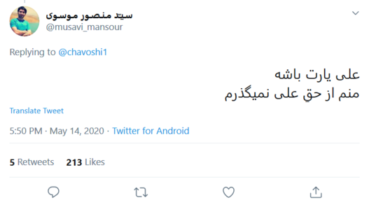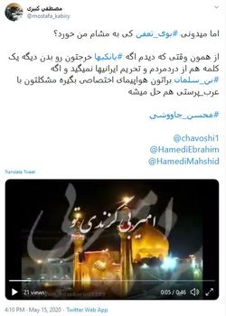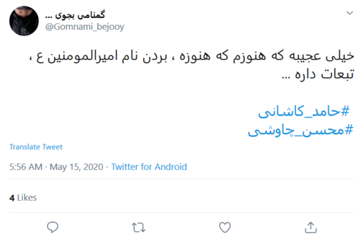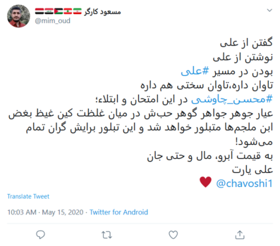 در ادامه، محسن چاووشی، اهانت به مقام امیرالمومنین علی (ع) را تاب نیاورد و ضمن پاسخ به مهشید برومند، سفر تعدادی از خوانندگان لسآنجلسی به عربستان را به یادشان آورد. چاووشی با قلمی متفاوت و معنادار نوشت: