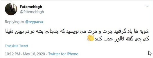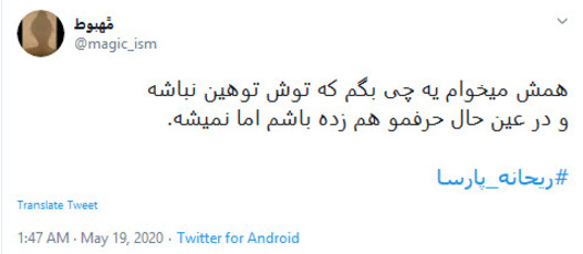 در ادامه تعدادی از نظرات کاربران درباره پست ریحانه پارسا را مشاهده میکنید.