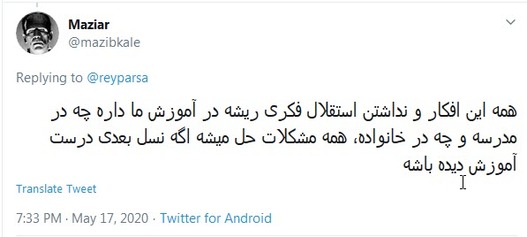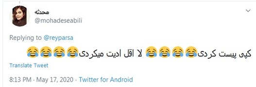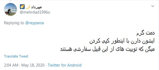 این متن کپی شده ریحانه پارسا در توئیتر که نشان میدهد فردی آن را برایش فرستاده و او هم بدون هیچ ادیتی آن را پست کرده، در شبکههای اجتماعی با واکنش تمسخرآمیز کاربران همراه شد. کاربران ذیل پست پارسا این حرکت او را نقد کردند و نوشتند که امثال این سلبریتیهای بیسواد و پرحاشیه، هیچگونه استقلال فکری از خود ندارند و فرد یا افرادی با تشکیل اتاق فکر به این جماعت خط میدهند. البته برخی هم معتقدند ریحانه پارسا و امثال او، عمدا این قبیل کارها را انجام میدهند تا برای خود فالوور جذب کنند.