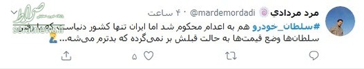 به گزارش باشگاه خبرنگاران در همین راستا؛ بسیاری از کاربران توییتری نگاهی به اعدام سلطان سکه داشتند، که پس از صدور حکم او، به جای کاهش قیمت، شاهد افزایش چند برابری قیمت سکه در بازار بودیم و اعدام سلطان سکه هم نتوانست توازنی بین خرید و فروش سکه در کشور برقرار کند.